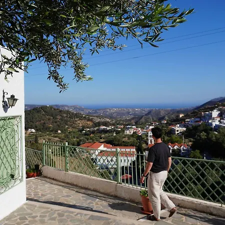 Apérion Thetidas Villa - Panoramic Village View בעלת 2 חדרי שינה נמצאת במרחק של פחות מ-9 דקות הליכה על Aghios Stavros. זה כולל מטבח מאובזר ו-2 חדרי אמבטיה.